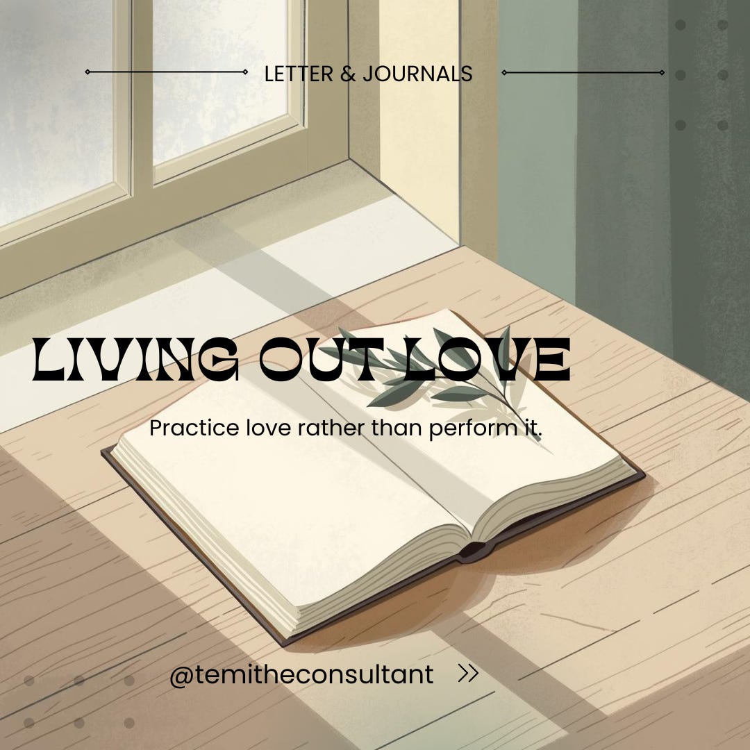 Invitation to notice, reflect, and practice love rather than perform it.